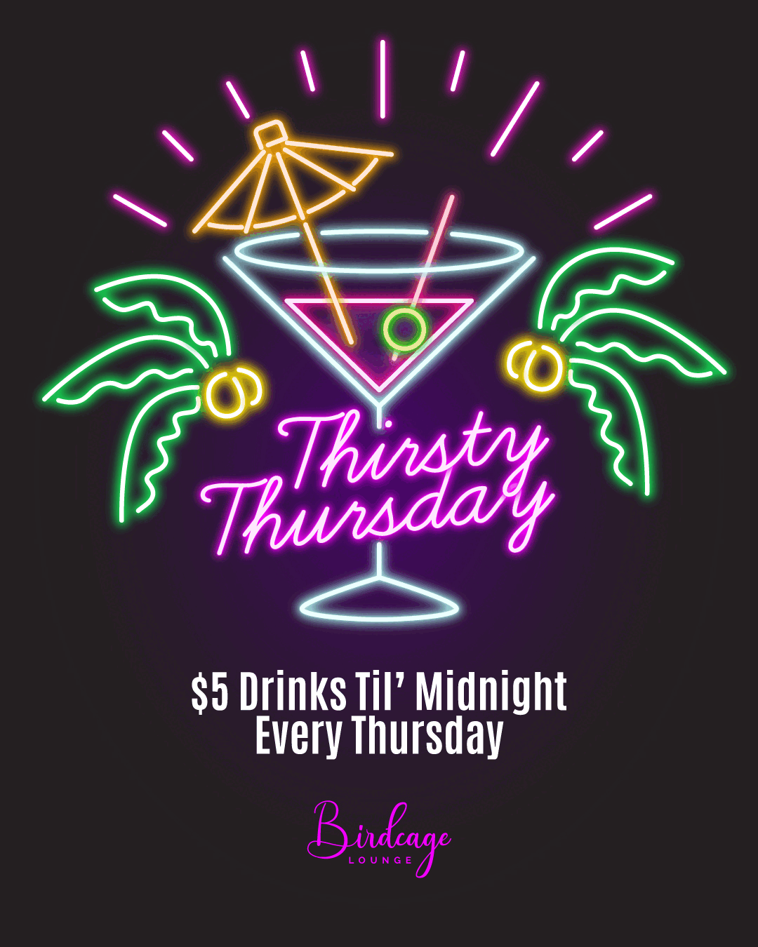 Birdcage Lounge will be open Thursday - Saturday nights from 7:00 PM - 2:00 AM with Happy Hour from 7:00pm - 10:00pm. This beautiful space is also available for private parties.